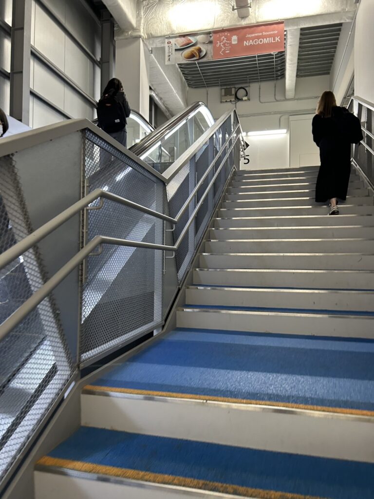 どこかしらに、エレベータなどもあるはずですが、足が不自由な方や、子ども連れだとかなり時間に余裕を持った方が良いと思います。