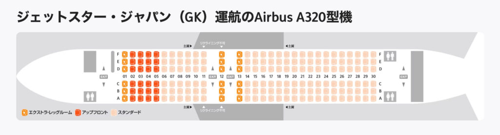 ※1列目ABC側は非常口座席扱いになるため、未就学児や子ども連れ、妊婦さんなどお手伝いが必要になる方が同行者でいると座れなくなるので注意が必要です。