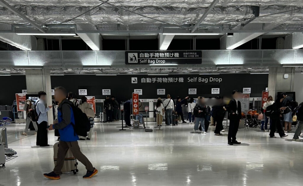 ほとんどの人がオンラインチェックインを済ませているようで、手荷物預けをそれぞれが行なっています。