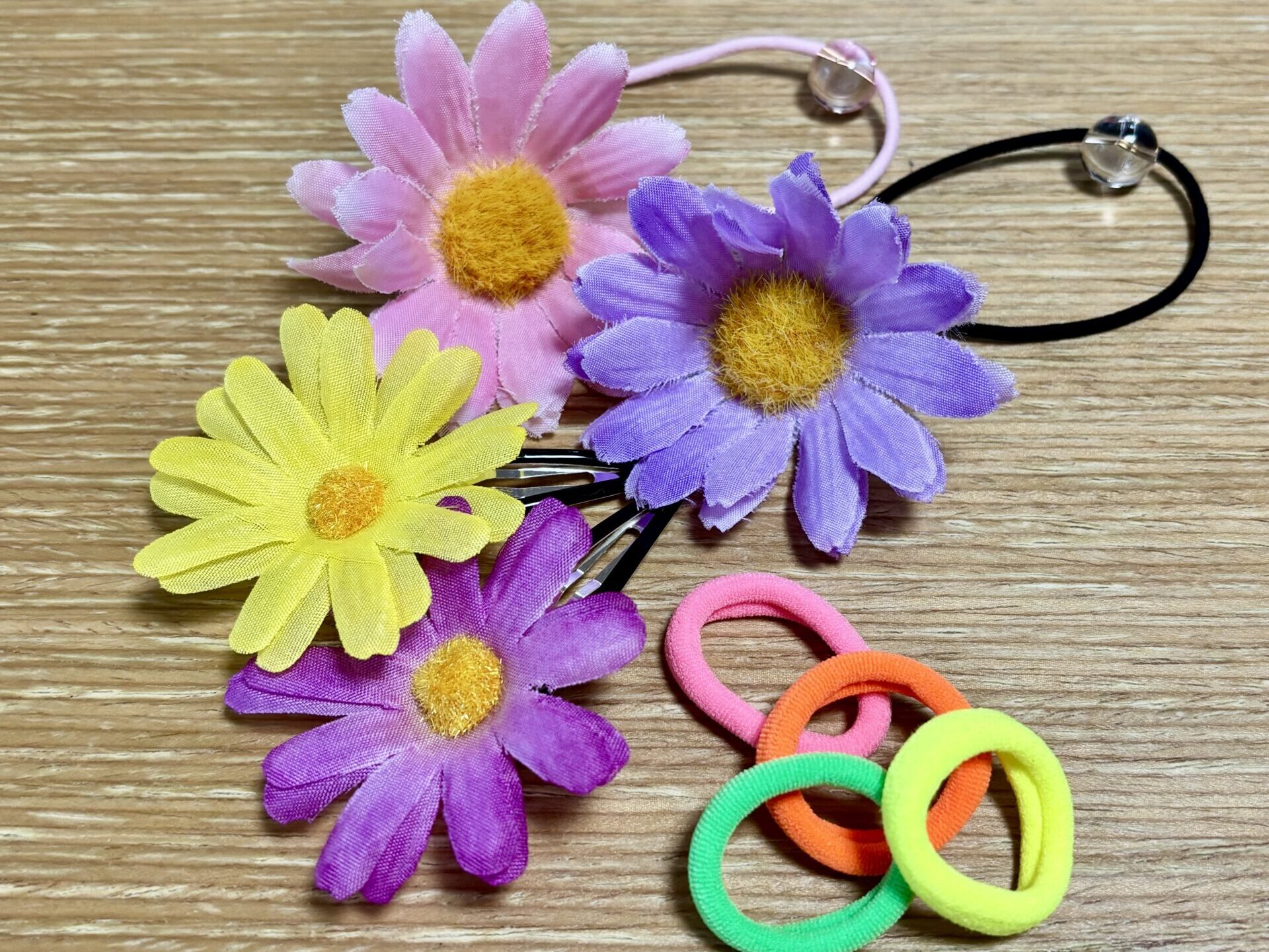 こちらのヘアゴムとヘアピンで仕上げていきたいと思います。