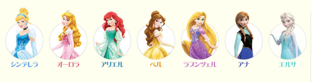 2025年12月現在では、こちらの7人のプリンセスに変身することができます